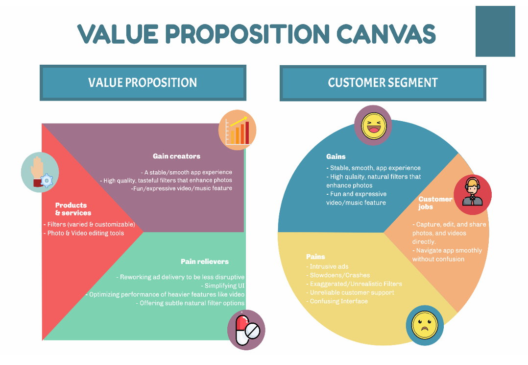 Once prioritized, I used the Value Proposition Canvas to clearly articulate each insight—mapping user pains, gains, and needs to ensure our eventual solution directly addressed the most critical engagement barriers for our target demographic.