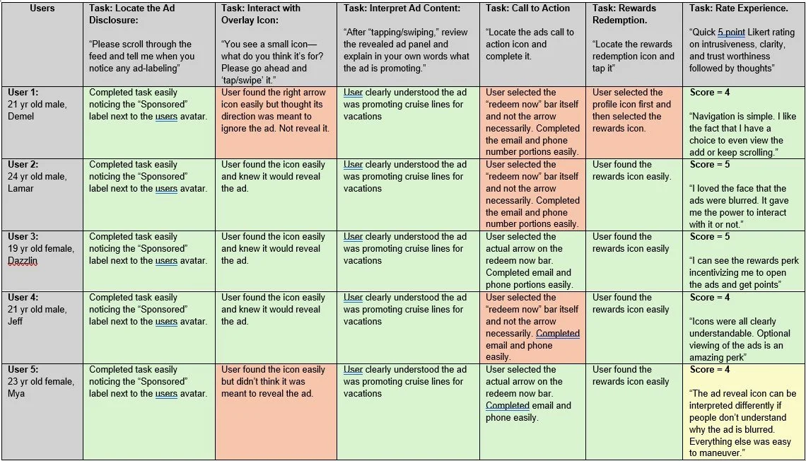 No confusion was observed during the flow, and all users were able to access the full ad content easily.